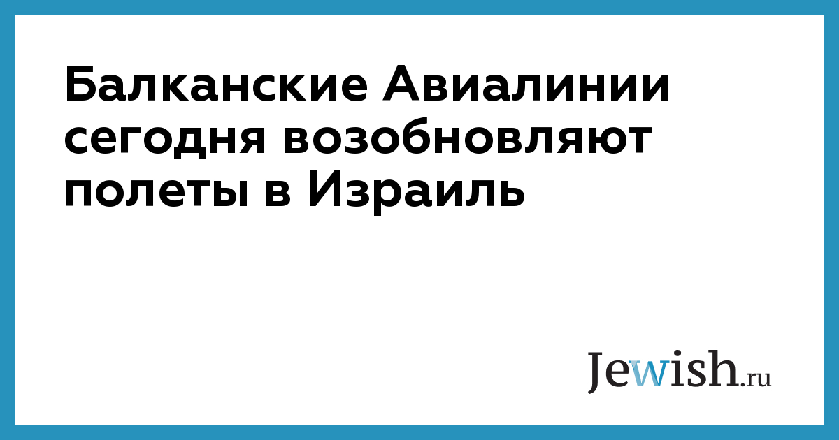 Балканские Авиалинии сегодня возобновляют полеты в Израиль
