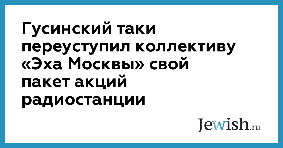 Гусинский таки переуступил коллективу «Эха Москвы» свой пакет акций радиостанции
