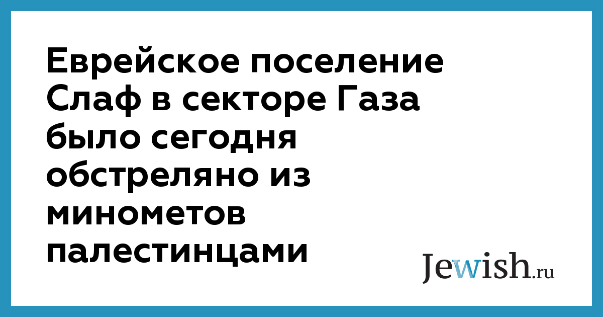 Еврейское поселение Слаф в секторе Газа было сегодня обстреляно из минометов палестинцами