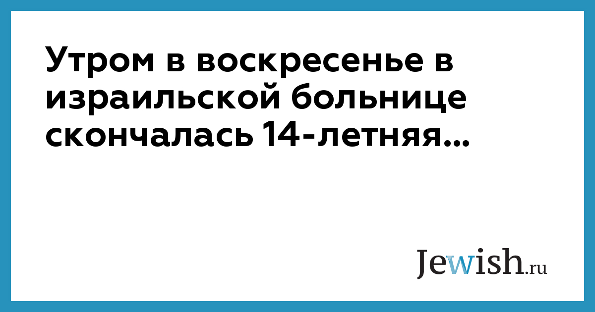 Утром в воскресенье в израильской больнице скончалась 14-летняя...