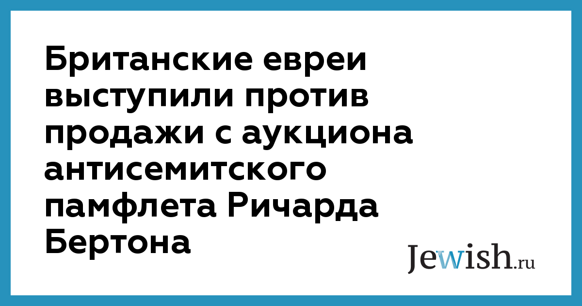 Британские евреи выступили против продажи с аукциона антисемитского памфлета Ричарда Бертона
