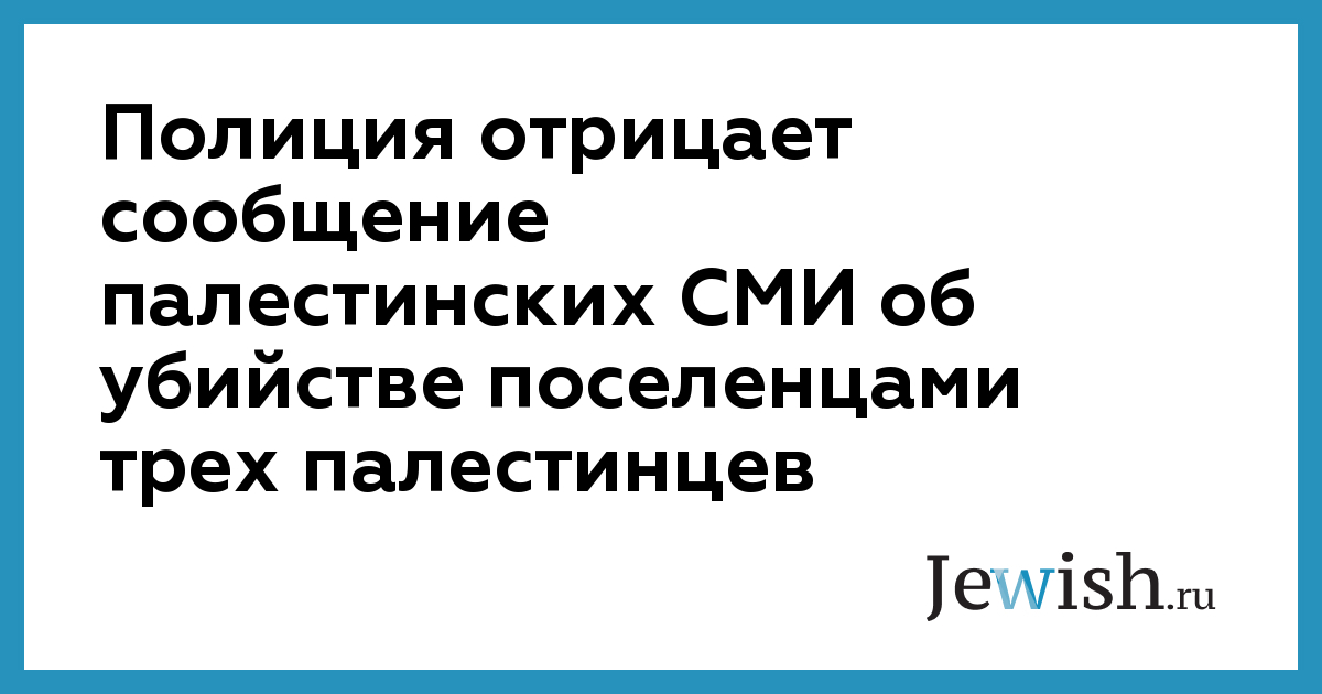 Полиция отрицает сообщение палестинских СМИ об убийстве поселенцами трех палестинцев