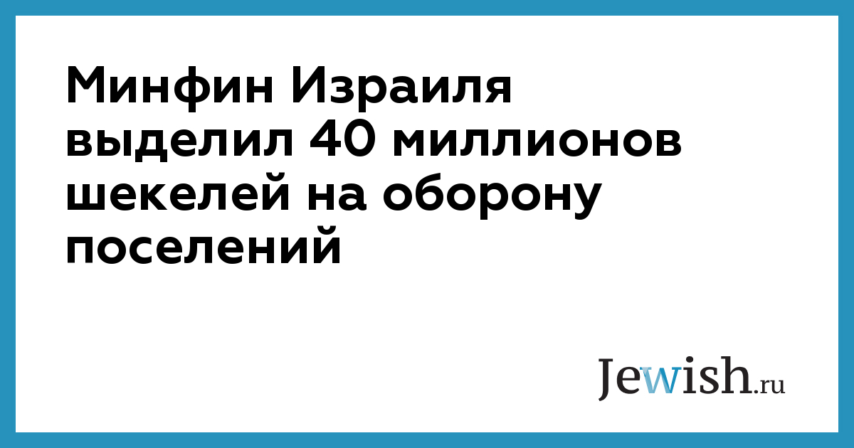 Минфин Израиля выделил 40 миллионов шекелей на оборону поселений
