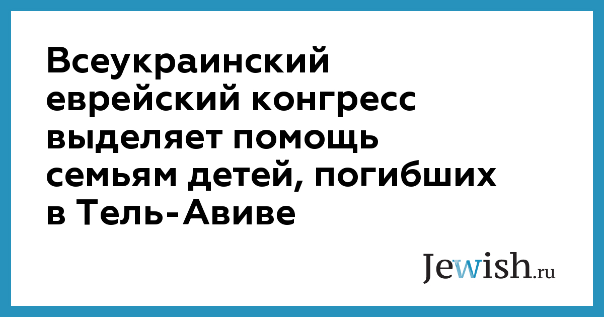 Всеукраинский еврейский конгресс выделяет помощь семьям детей, погибших в Тель-Авиве