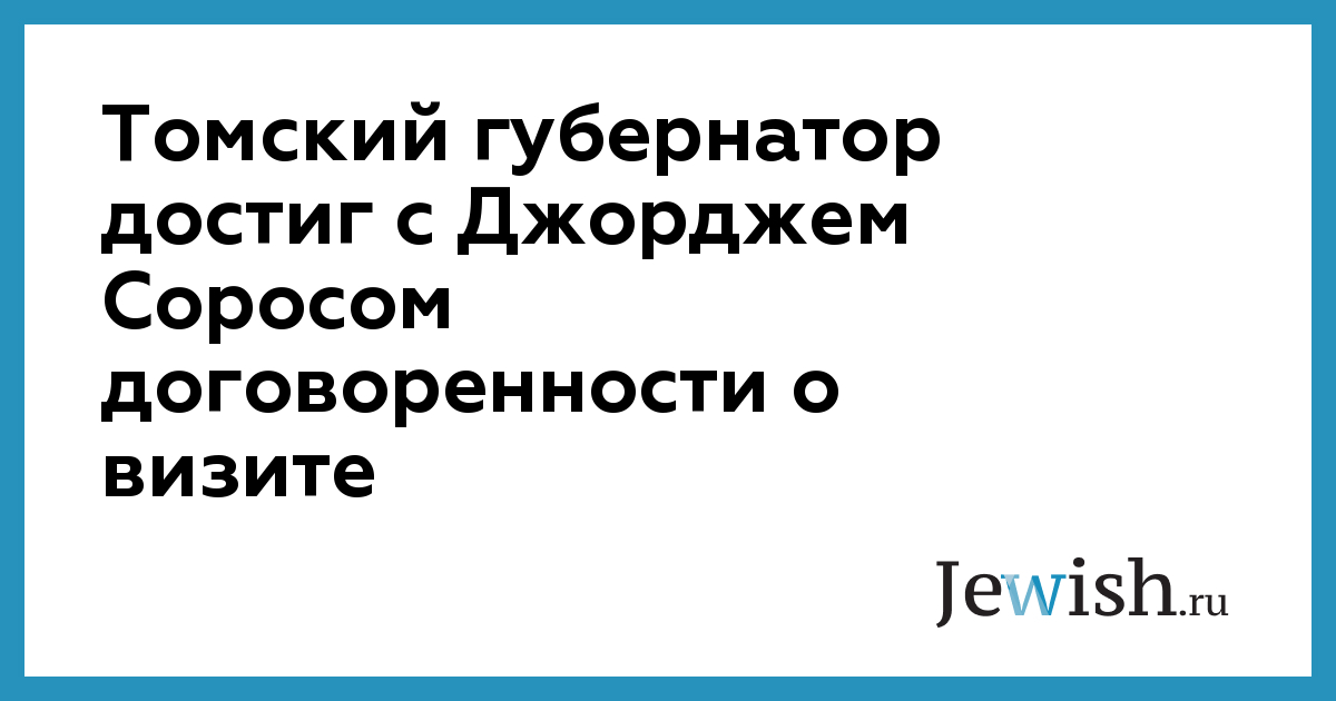 Томский губернатор достиг с Джорджем Соросом договоренности о визите