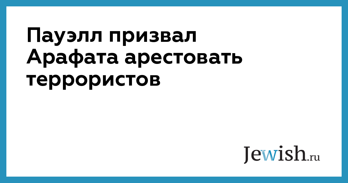 В другом, письменном, заявлении Пауэлл призвал Арафата "предпринять 100-процентные усилия против насилия и терроризма, в том числе и аресты ответственных за совершенные теракты – такие, как взрыв в Тель-Авиве в минувшую пятницу". Тогда палестинец-камикадзе взорвал себя и 20 человек, большинство из которых были выходцами из бывшего Союза, в ночном клубе.