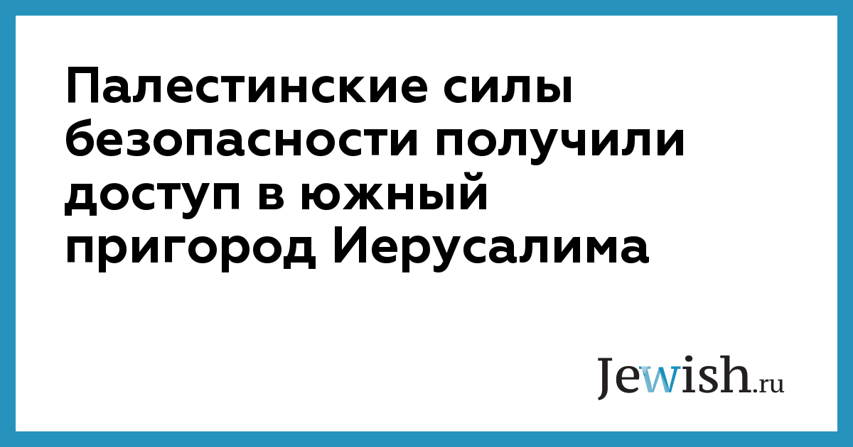 Палестинские силы безопасности получили доступ в южный пригород Иерусалима