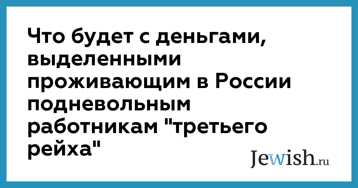 Что будет с деньгами, выделенными проживающим в России подневольным работникам "третьего рейха"