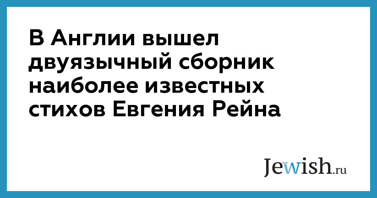 В Англии вышел двуязычный сборник наиболее известных стихов Евгения Рейна
