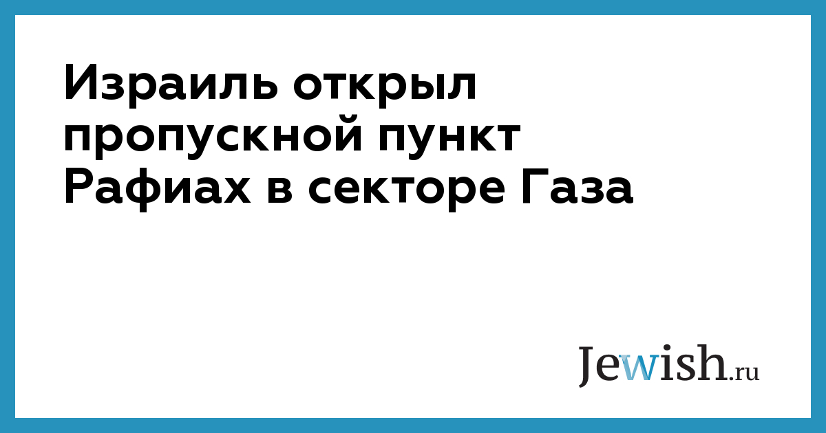 Израиль открыл пропускной пункт Рафиах в секторе Газа