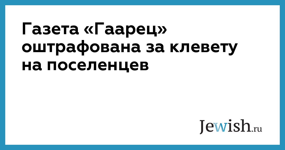 Газета «Гаарец» оштрафована за клевету на поселенцев