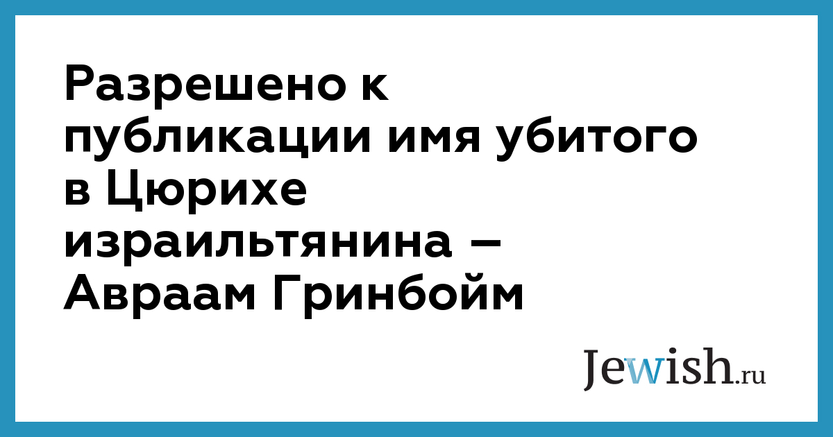 Разрешено к публикации имя убитого в Цюрихе израильтянина – Авраам Гринбойм