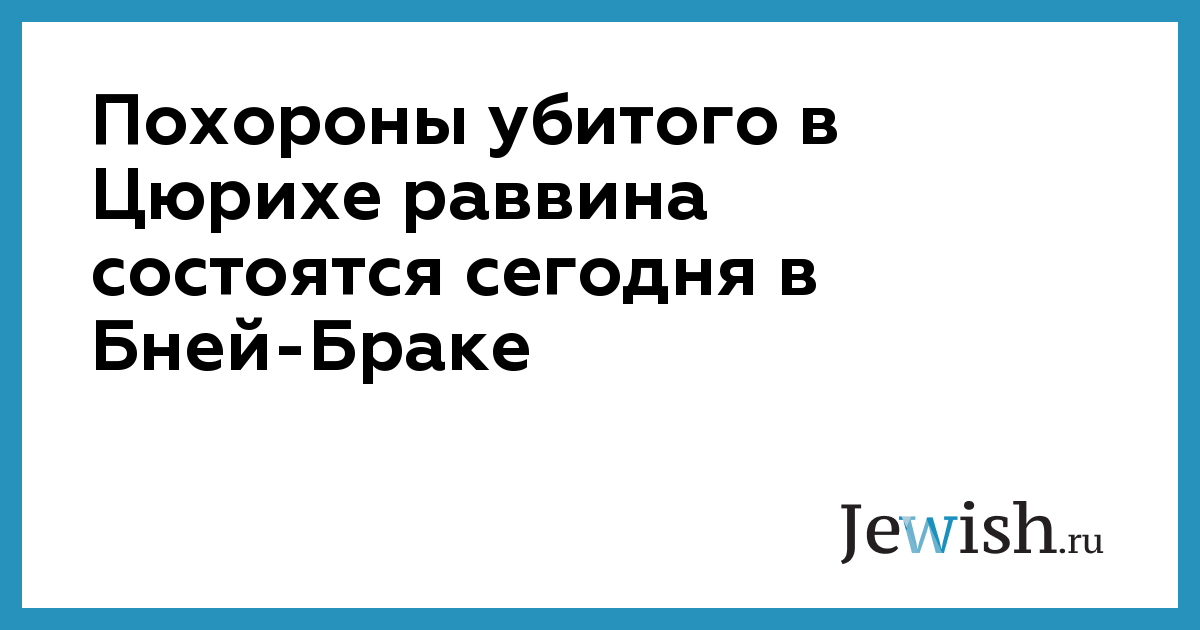 Похороны убитого в Цюрихе раввина состоятся сегодня в Бней-Браке