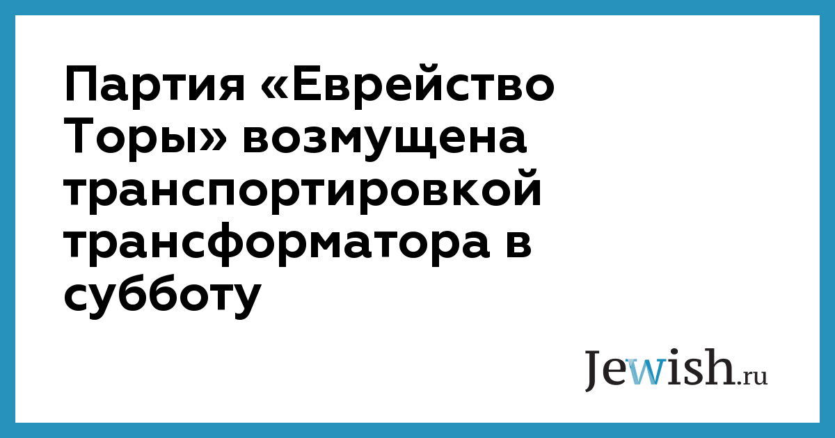 Партия «Еврейство Торы» возмущена транспортировкой трансформатора в субботу