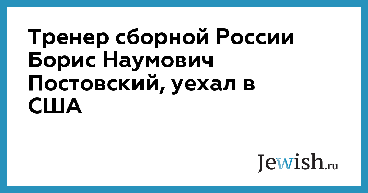 Тренер сборной России Борис Наумович Постовский, уехал в США