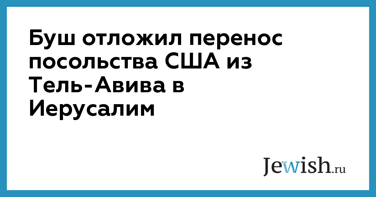 Буш отложил перенос посольства США из Тель-Авива в Иерусалим