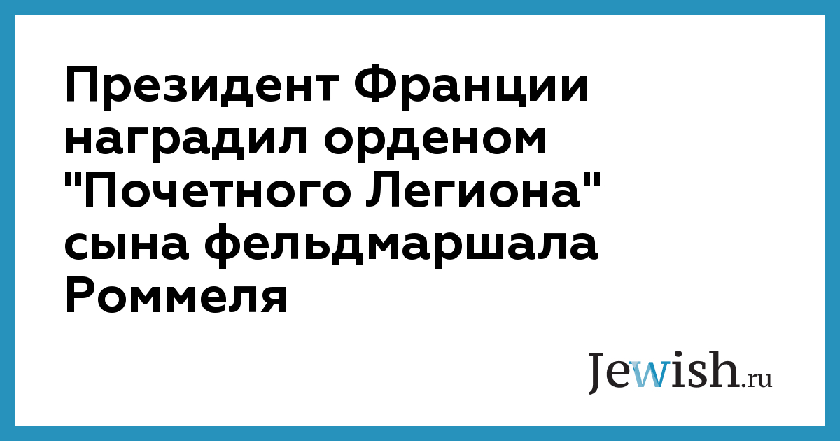 Президент Франции наградил орденом "Почетного Легиона" сына фельдмаршала Роммеля