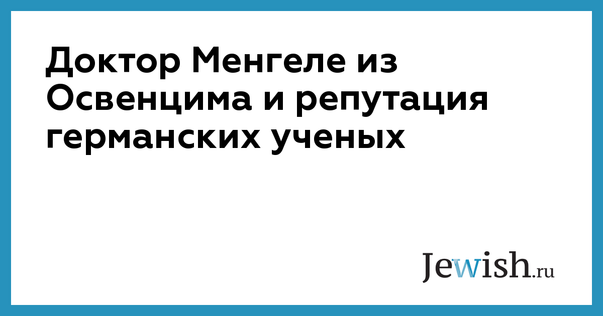 Доктор Менгеле из Освенцима и репутация германских ученых