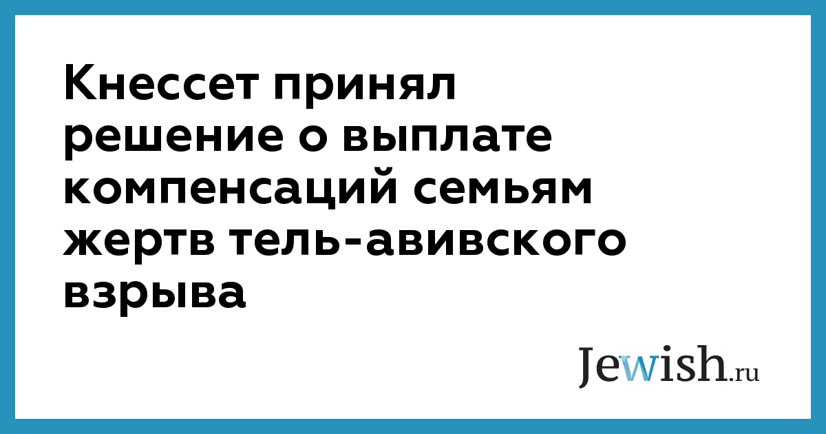 Кнессет принял решение о выплате компенсаций семьям жертв тель-авивского взрыва