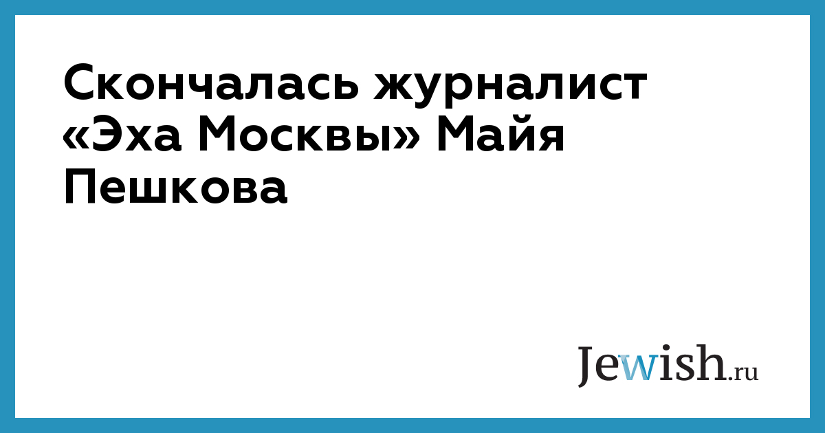«Журналист “Эха” Майя Пешкова ушла из жизни. Ковид», – написал в своем Telegram-канале главред радиостанции Алексей Венедиктов.