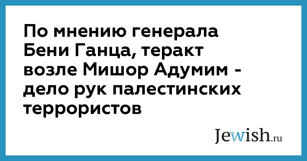 По мнению генерала Бени Ганца, теракт возле Мишор Адумим — дело рук палестинских террористов