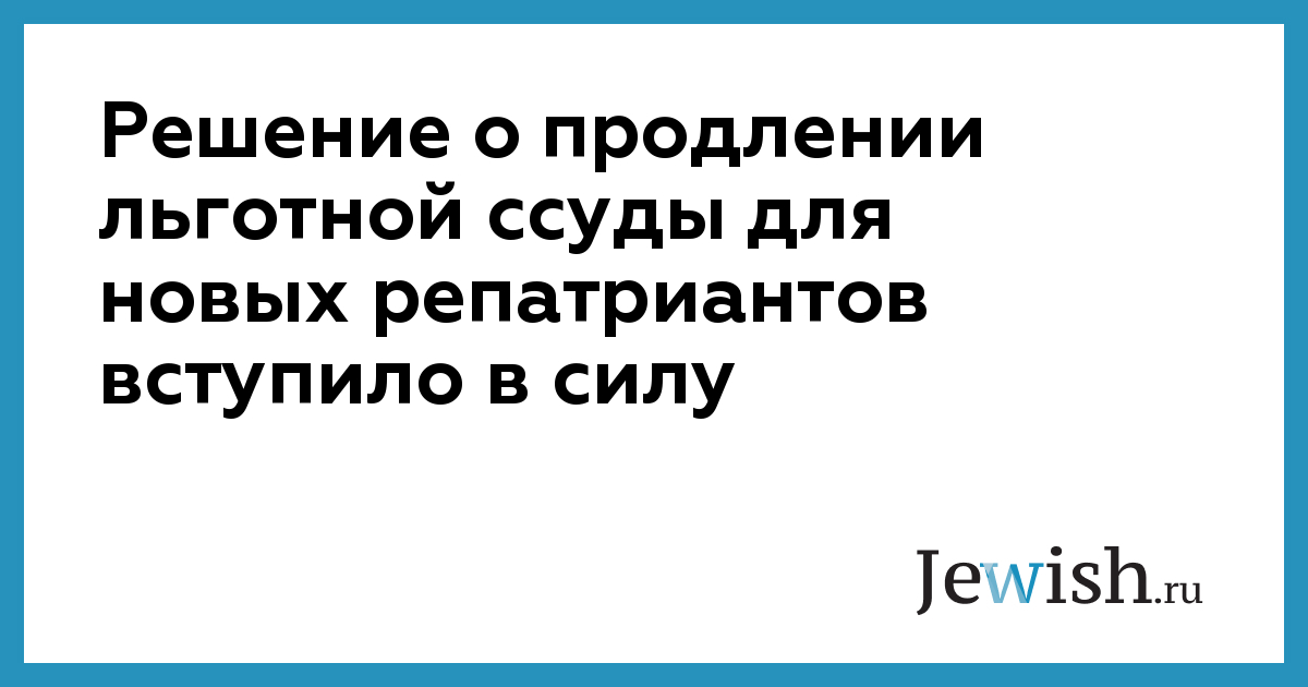 Решение о продлении льготной ссуды для новых репатриантов вступило в силу