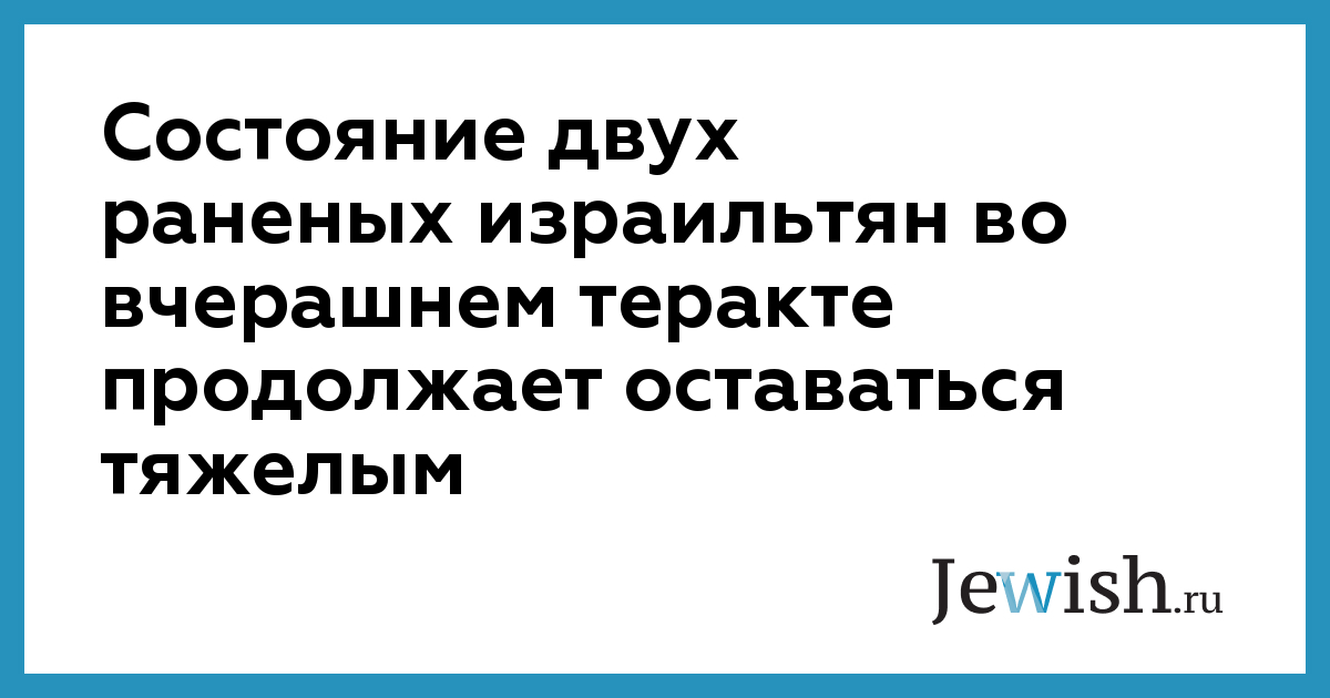 Состояние двух раненых израильтян во вчерашнем теракте продолжает оставаться тяжелым
