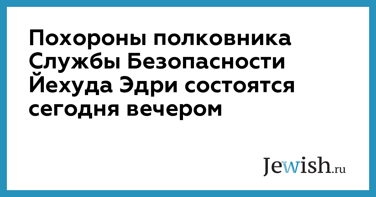 Похороны полковника Службы Безопасности Йехуда Эдри состоятся сегодня вечером