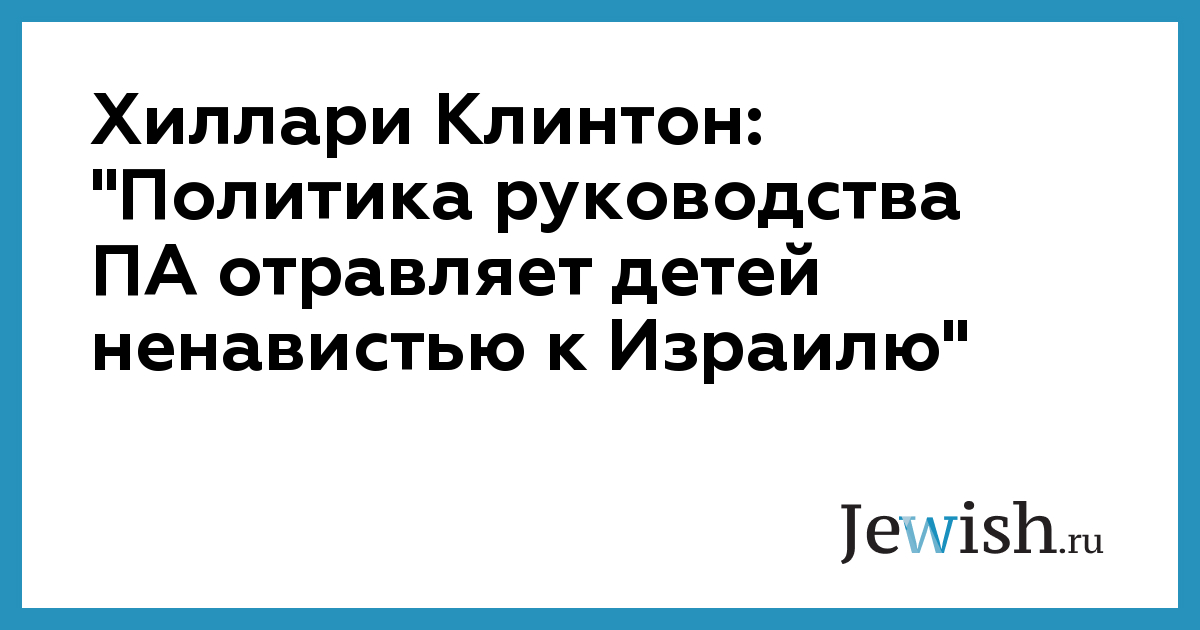 Хиллари Клинтон: "Политика руководства ПА отравляет детей ненавистью к Израилю"