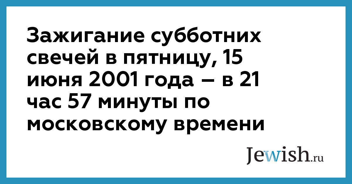 Зажигание субботних свечей в пятницу, 15 июня 2001 года – в 21 час 57 минуты по московскому времени