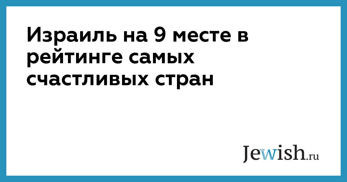 Израиль занял 9-е место в ежегодном «Отчете мирового счастья» (World Happiness Report) – рейтинге, оценивающем уровень удовлетворения жителей стран мира. В этом году Израиль впервые вошел в первую десятку рейтинга. «Счастье» жителей перечисленных.в нем стран определяется по набору параметров: от ВВП и данных о коррупции до уровней удовлетворения граждан и их личной свободы. Также составители учитывали воздействие пандемии на жизнь людей.