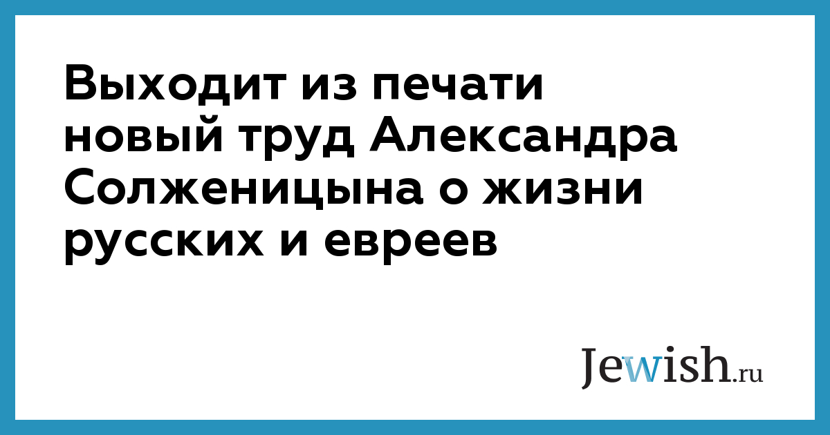 Выходит из печати новый труд Александра Солженицына о жизни русских и евреев