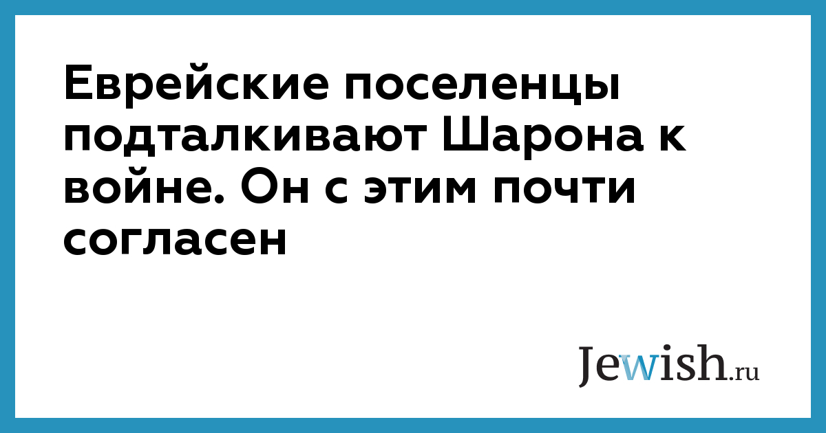 Еврейские поселенцы подталкивают Шарона к войне. Он с этим почти согласен