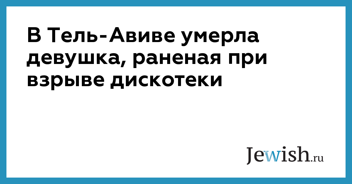 В Тель-Авиве умерла девушка, раненая при взрыве дискотеки