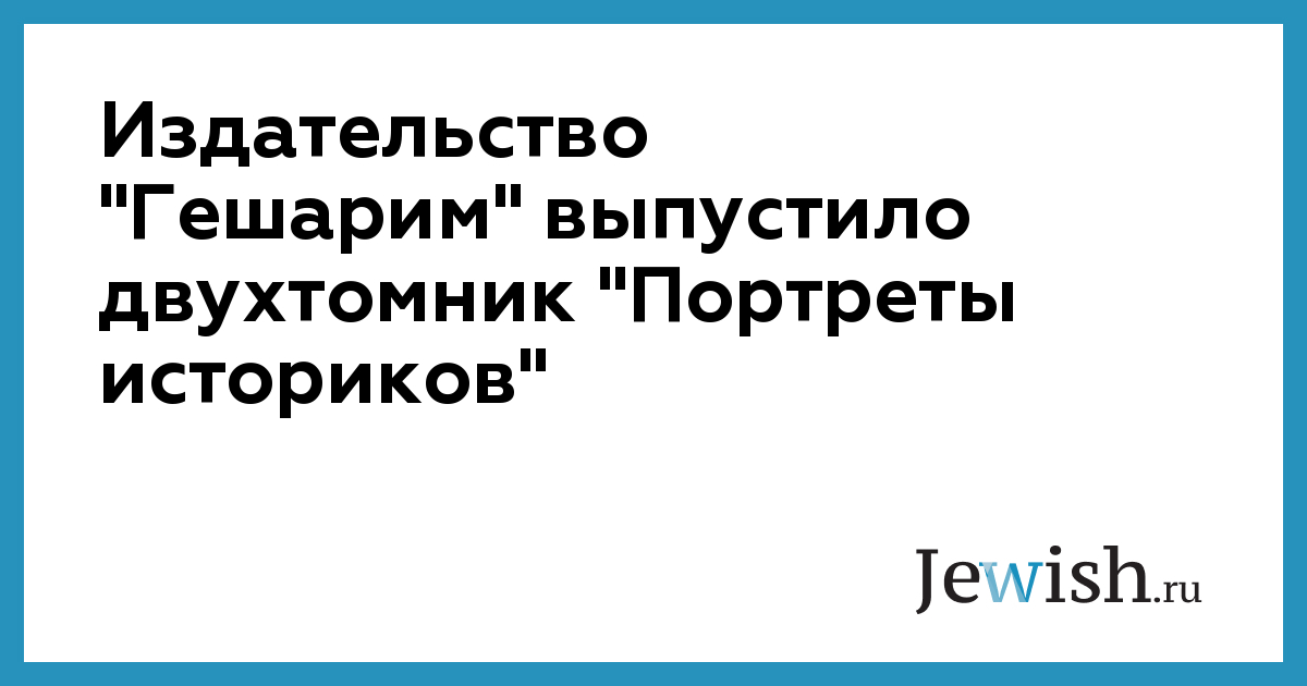 Издательство "Гешарим" выпустило двухтомник "Портреты историков"
