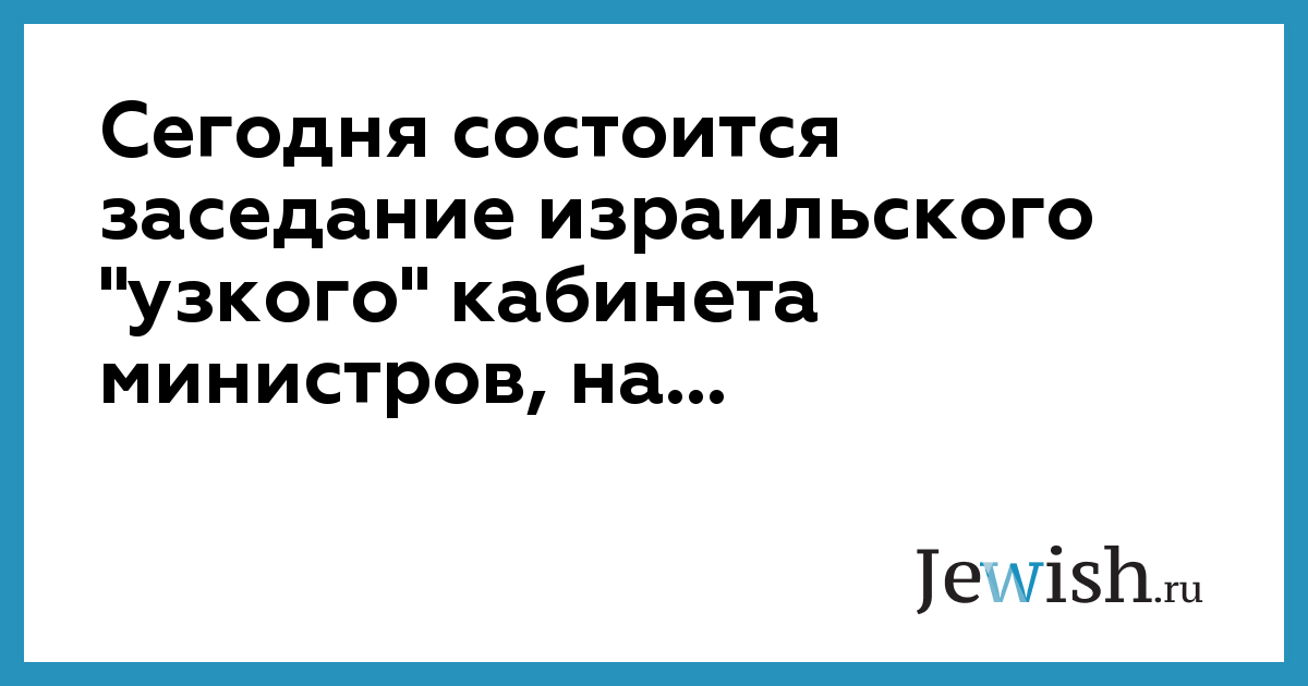 Сегодня состоится заседание израильского "узкого" кабинета министров, на...