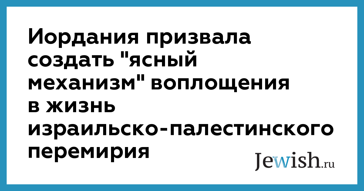 Иордания призвала создать "ясный механизм" воплощения в жизнь израильско-палестинского перемирия