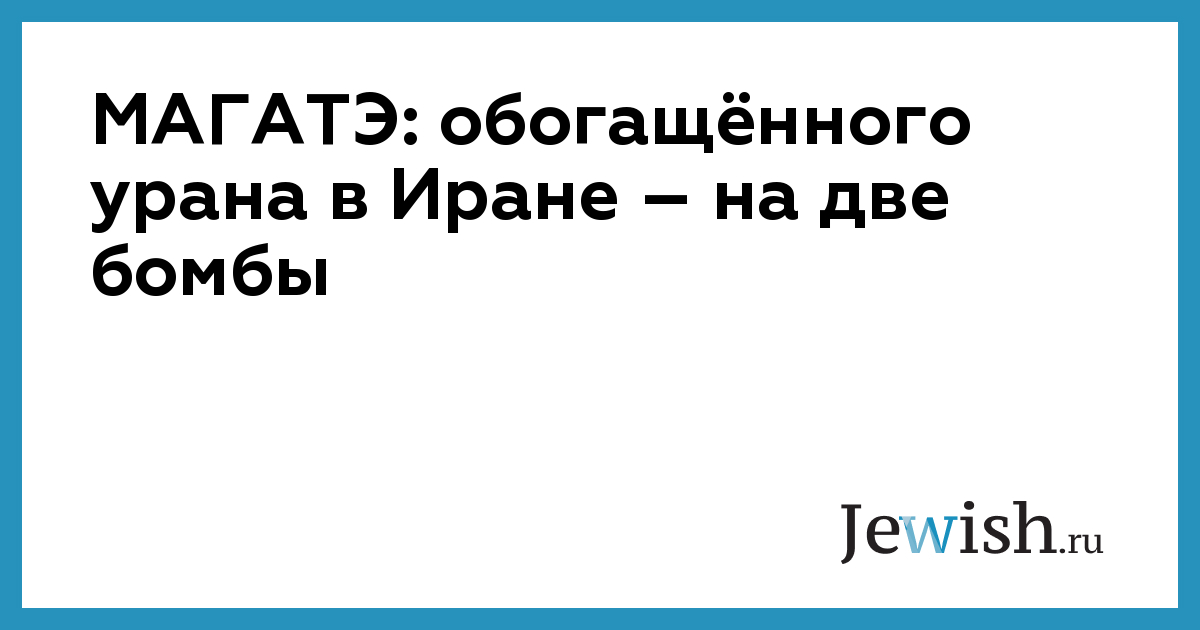 Международное агентство по атомной энергии (МАГАТЭ) опубликовало отчет, в котором указано, что в настоящее время у Ирана есть 114 кг урана 60%-й чистоты, пишет Ynet. Такого количества, если его обогатить до 90%, хватит на две ядерные бомбы.