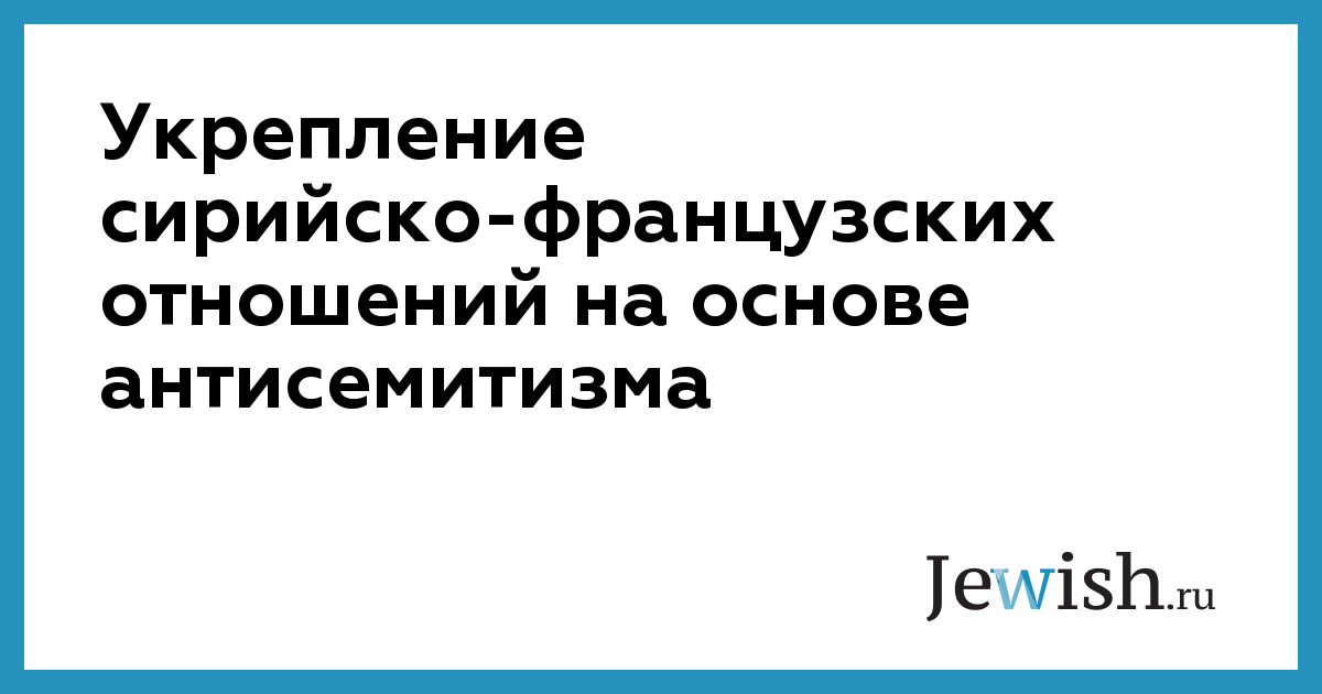 Укрепление сирийско-французских отношений на основе антисемитизма