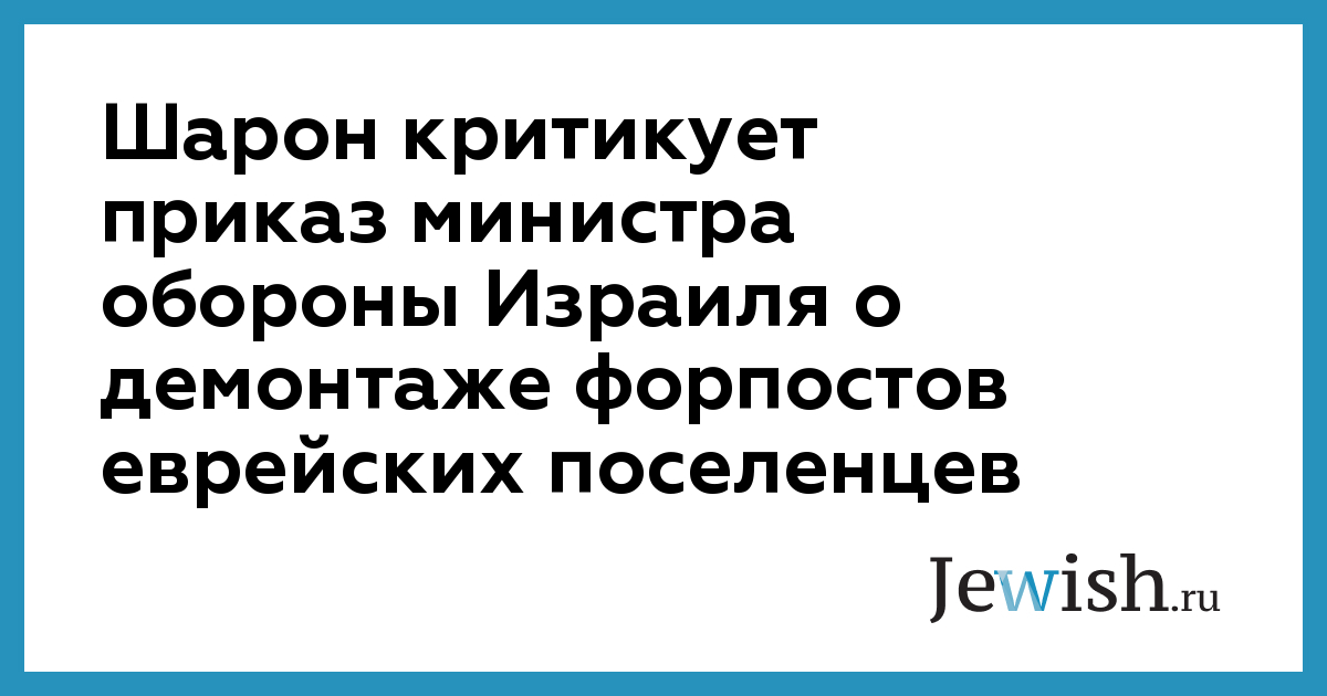 Шарон критикует приказ министра обороны Израиля о демонтаже форпостов еврейских поселенцев