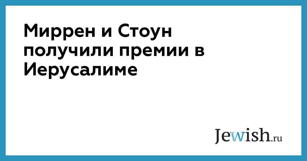 Там, отмывая тарелки, Хелен услышала, как за ее спиной кто-то говорит на иврите, а затем все стихло. «Я обернулась – позади меня никого не было, потому что все спустились в бомбоубежище, а я осталась на кухне с этой посудой. В тот момент я и представить не могла, что буду стоять здесь, в этом прекрасном, историческом, волшебном, непростом и удивительном городе Иерусалиме. И я очень, очень благодарна вам за эту награду», – подытожила Миррен, отметив, что посвящает награду своему «племени» – актерам по всему миру, какой бы национальности они ни были.