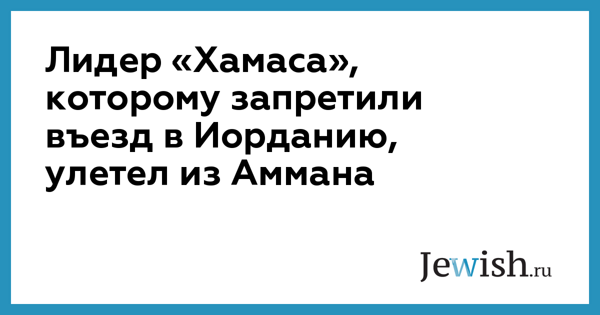 Лидер «Хамаса», которому запретили въезд в Иорданию, улетел из Аммана