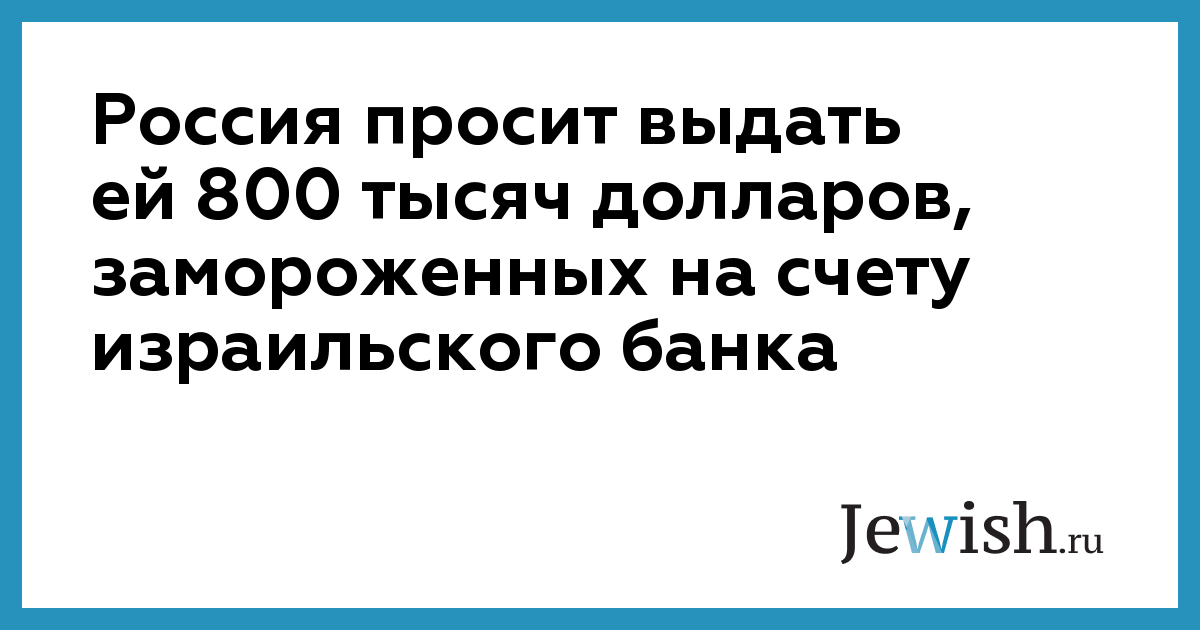Россия просит выдать ей 800 тысяч долларов, замороженных на счету израильского банка