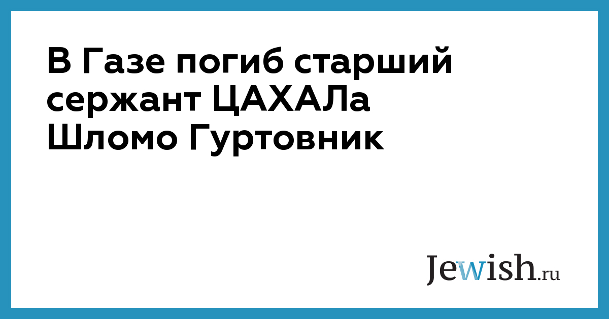 В Газе погиб старший сержант ЦАХАЛа Шломо Гуртовник