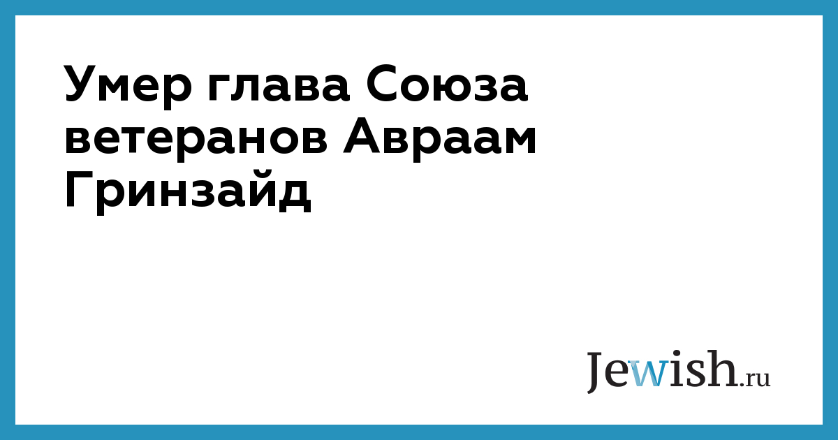 В возрасте 98 лет скончался глава израильского Союза ветеранов Второй мировой войны и борцов с нацистами Авраам Гринзайд. Сообщение о его смерти опубликовано на сайте организации. «Прекрасный человек, организатор, вдохновитель, друг, товарищ. Он внес огромный вклад в развитие организации, заботился о всех членах – ветеранах войны, жителях блокадного Ленинграда, узниках гетто и членах семей. При нем Союз ветеранов превратился в мощную организацию мирового масштаба», — указано в некрологе.