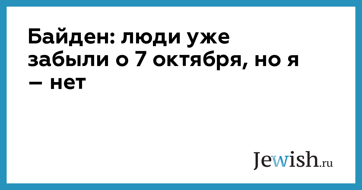 «Спустя не 75 лет, а всего лишь 7 месяцев люди позабыли, что именно ХАМАС начал эту войну, именно террористы устроили резню в Израиле и продолжают удерживать заложников. Но я не забыл. Как и вы. И все мы этого не забудем, – отметил американский лидер. – Я привержен безопасности еврейского народа и Израиля, его права на существование. И моя приверженность неколебима, несмотря на все разногласия». Кроме того, президент обратился к евреям, живущим в Штатах, заверив, что он видит в них «страх и боль» и не даст их в обиду. «Я, как ваш президент, заверяю: вы не одиноки. Вы – часть нашего общества, всегда были ею и будете», – подчеркнул он.