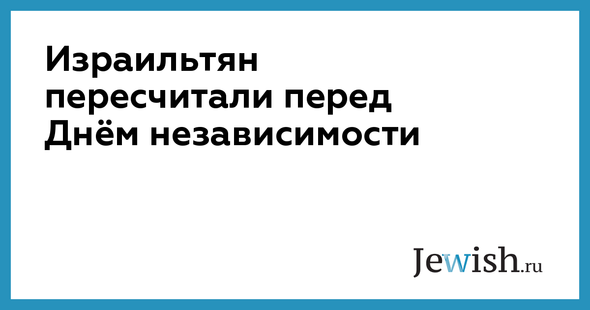 Около 28% из них – дети в возрасте до 14 лет и только около 12% – пожилые граждане, которым уже исполнилось 65. Согласно данным бюро, 73,2% населения – это евреи, 21,1% – арабы, еще 5,7% – представители других национальностей. С прошлого Дня независимости население Израиля увеличилось на 189 тыс. человек. За этот период родились около 196 тыс. детей, прибыли 37 тыс. иммигрантов и умерли около 60 тыс. человек.
