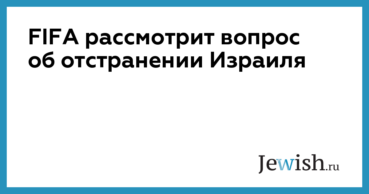 Совет Международной федерации футбола (FIFA) в июле рассмотрит требование Футбольной ассоциации Палестинской автономии о приостановке членства Федерации футбола Израиля. Решение будет принято после проведения независимой юридической консультации, сообщил президент FIFA Джанни Инфантино.