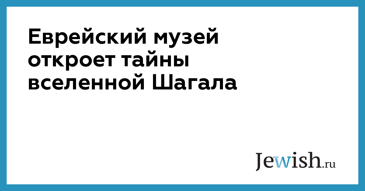 Еврейский музей и центр толерантности готовится представить проект для всей семьи — «В ожидании чуда. Посвящение Марку Шагалу». Выставка, навеянная сюжетами романа Шагала «Моя жизнь», по задумке организаторов станет настоящим путешествием по наиболее важным страницам биографии и периодам творчества художника. Проект, обещающий эффект погружения в фантастическую вселенную Марка Шагала, стартует 28 мая.