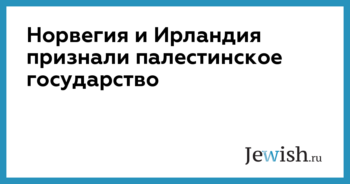 Сегодня Норвегия и Ирландия объявили, что официально признают палестинское государство. Испания сделает это чуть позже, 28 мая. NBC отмечает, что таким образом Европа наносит «последний дипломатический удар по Израилю».